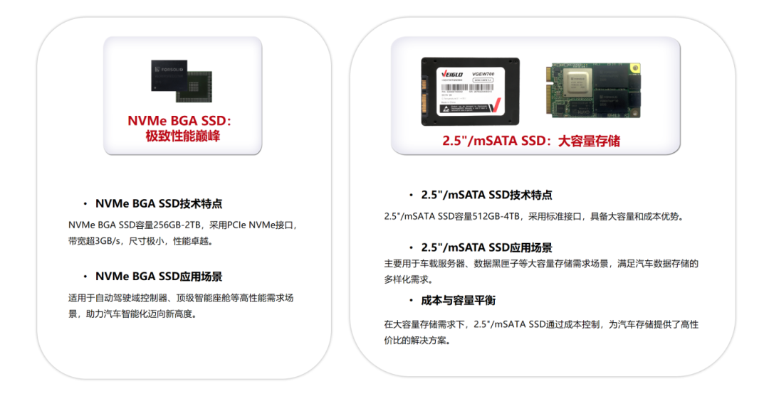 面对ADAS系统对高速写入与高可靠性的严苛要求,威固的UFS与NVMe BGA SSD产品能够实时处理传感器数据,保障行车安全。